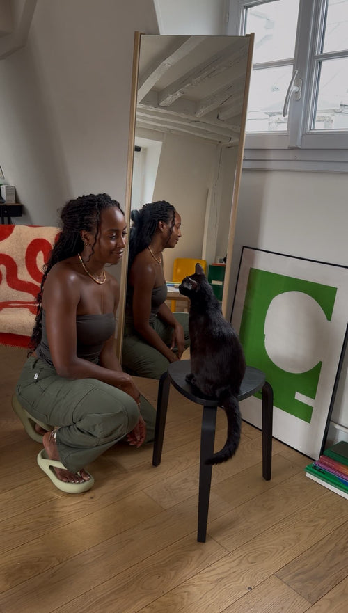 Discover the Lun Mirror, designed to neatly lean against any wall and enhance the aesthetic of your space. Whether it's in your hallway, bedroom, or living room, Lun mirrors your style with its chic, two-tone frame, also available in a neutral oak finish. More than just a decorative piece, Lun visually expands your interior, making it a standout feature of your home. Perfect for adding depth and a touch of elegance, it’s as practical as it is striking.