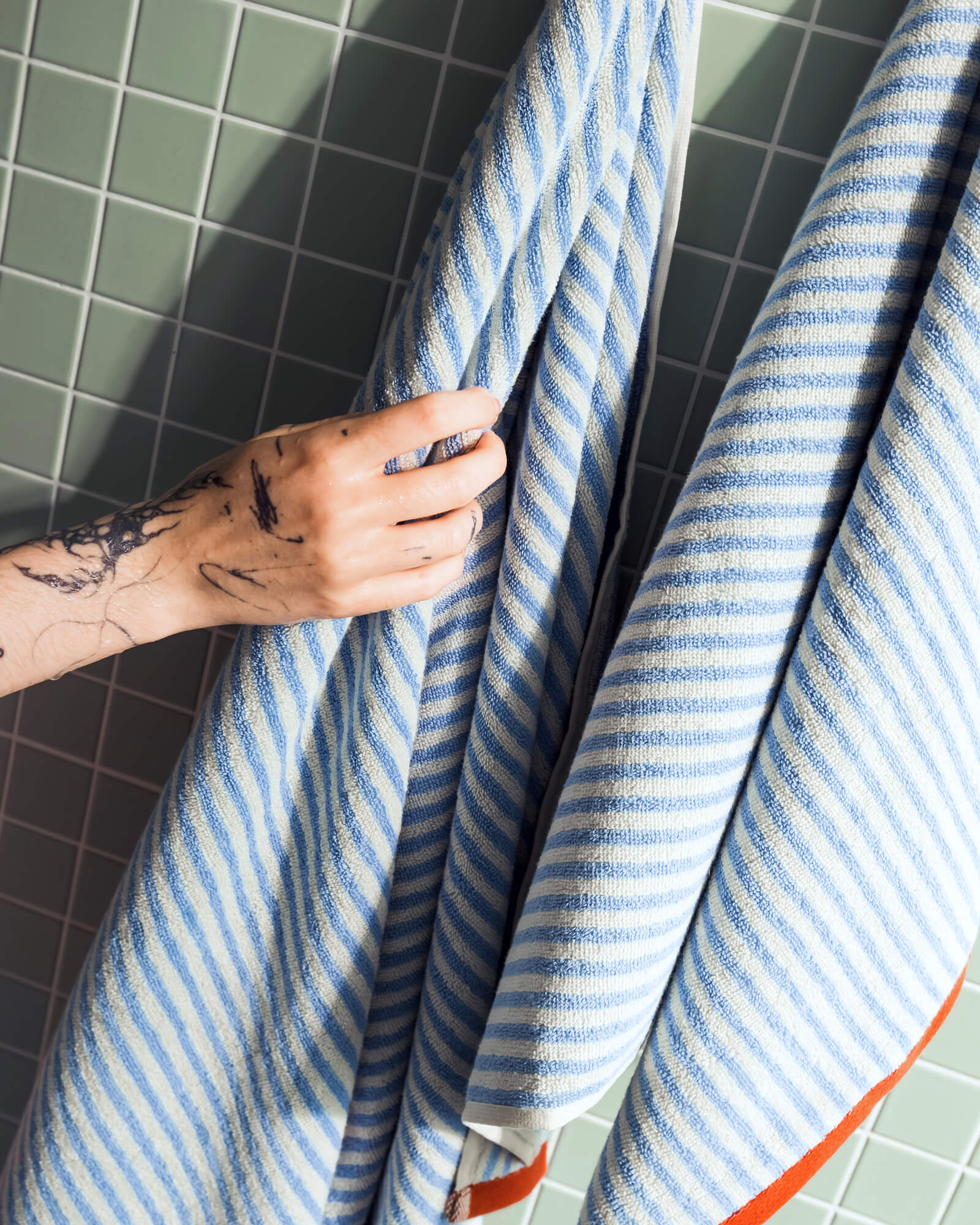 Gobo Towels are the bathroom essentials to fit your everyday routine. Available in two size variants, they create a complementary set that brings a sense of harmony and attention to detail to every bathroom. A soft striped pattern meets delicate pastel tones and contrasting trim, and the absorbent soft cotton fabric offers a firsthand feel of lasting quality.