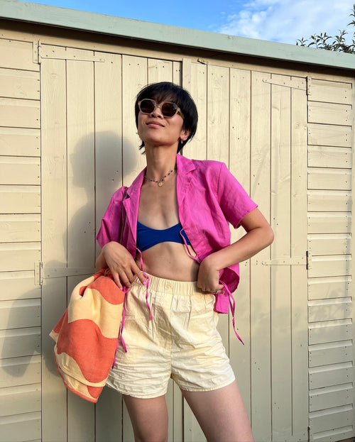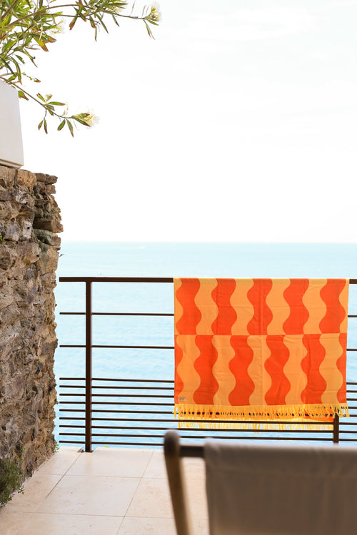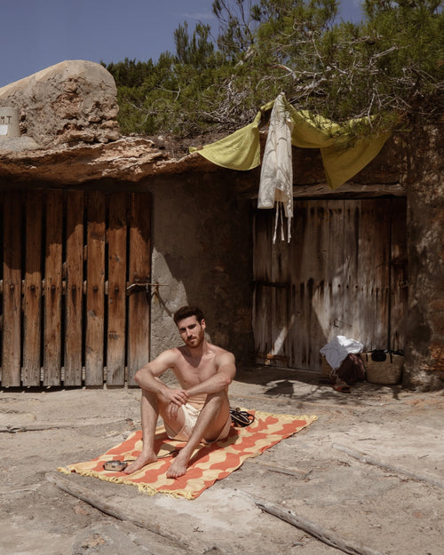 Introducing Nugo — a fabulous cotton beach towel in a cheery pattern, made of soft, tasseled textile. Nugo comes as a great companion for sunny holidays, a Sunday trip to the lake, or a moment of rest in the garden — you name it. Whether you're embarking on a tropical adventure or simply enjoying a staycation, Nugo's vibrant colors and soft texture will add a touch of joy to your relaxation time.