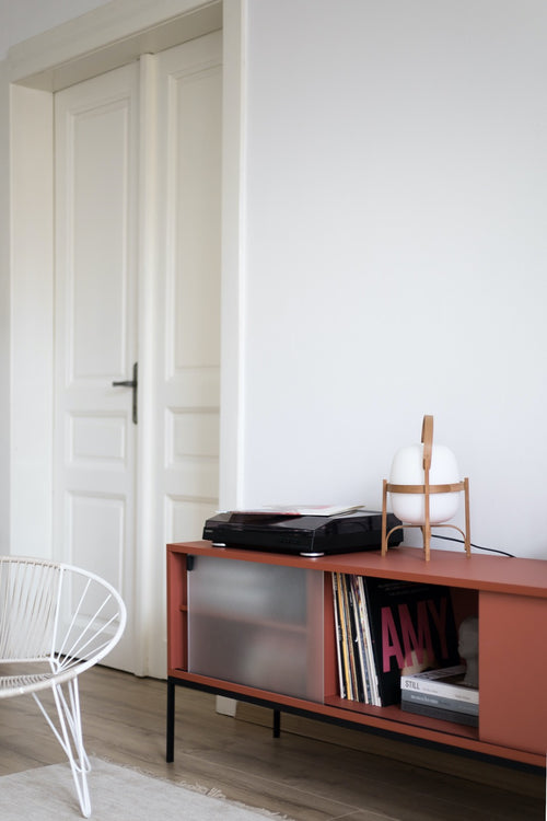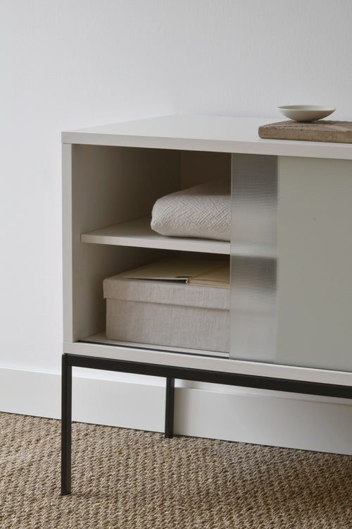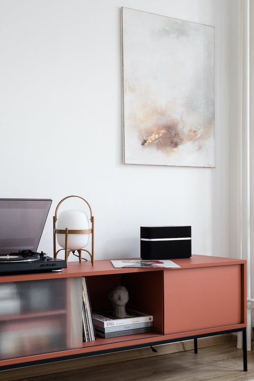 Looking for a capacious TV unit with storage? Get to know Met - a sleek, carefully designed black TV stand, a perfect match for your living room furniture and home electronics. Its spacious compartments will help you effortlessly display any media devices, books, vinyl collections and more.