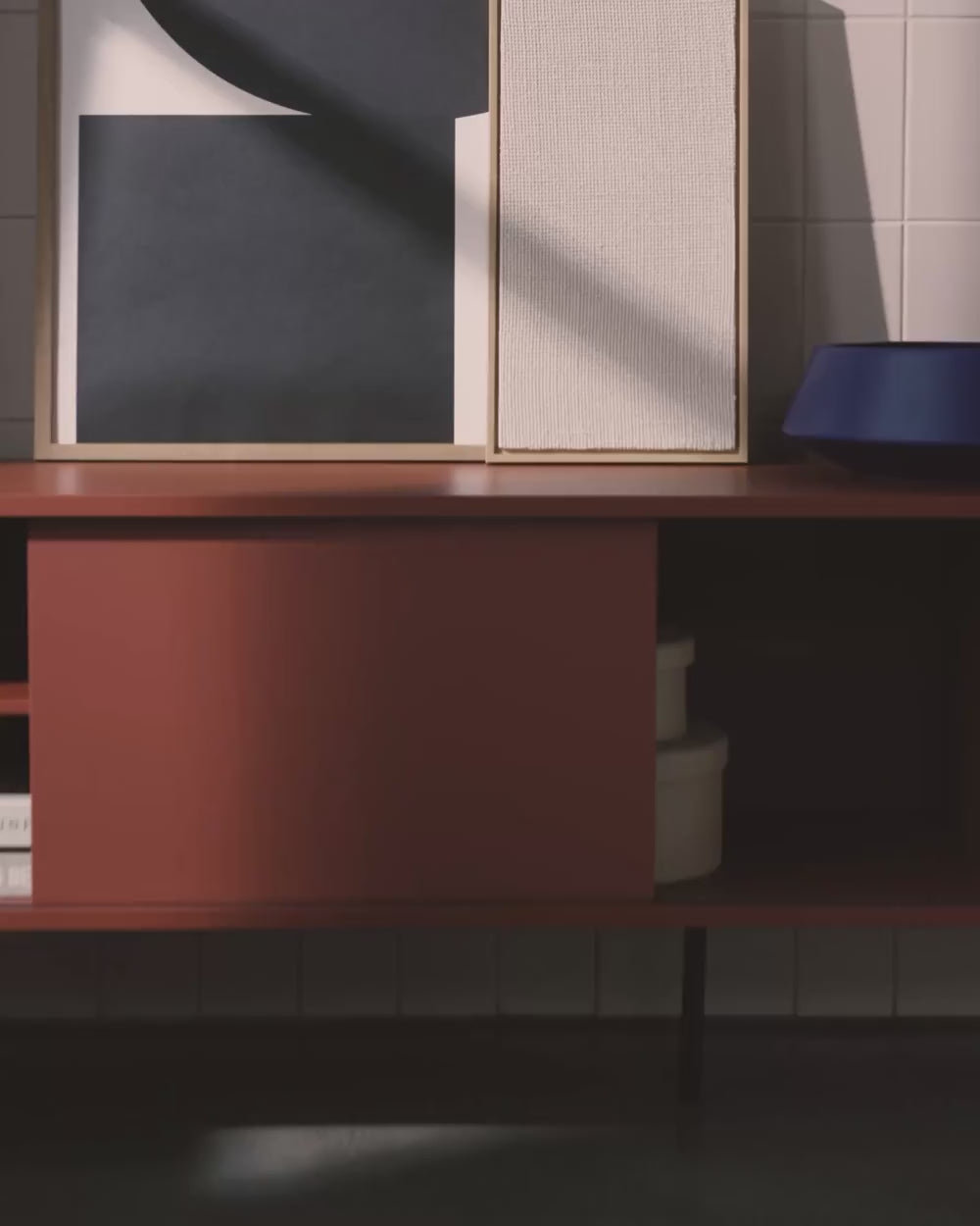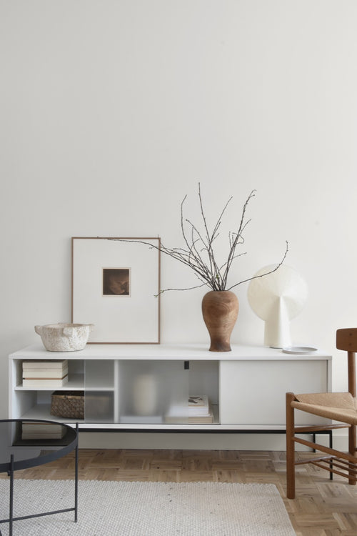 Looking for a capacious TV unit with storage? Get to know Met - a sleek, carefully designed white TV stand, a perfect match for your living room furniture and home electronics. Its spacious compartments will help you effortlessly display any media devices, books, vinyl collections and more.