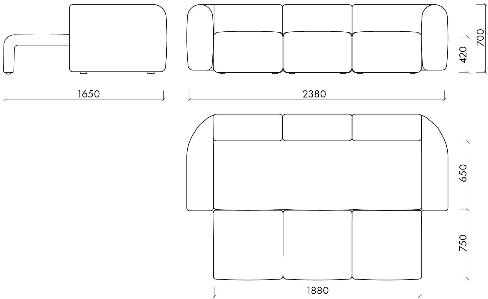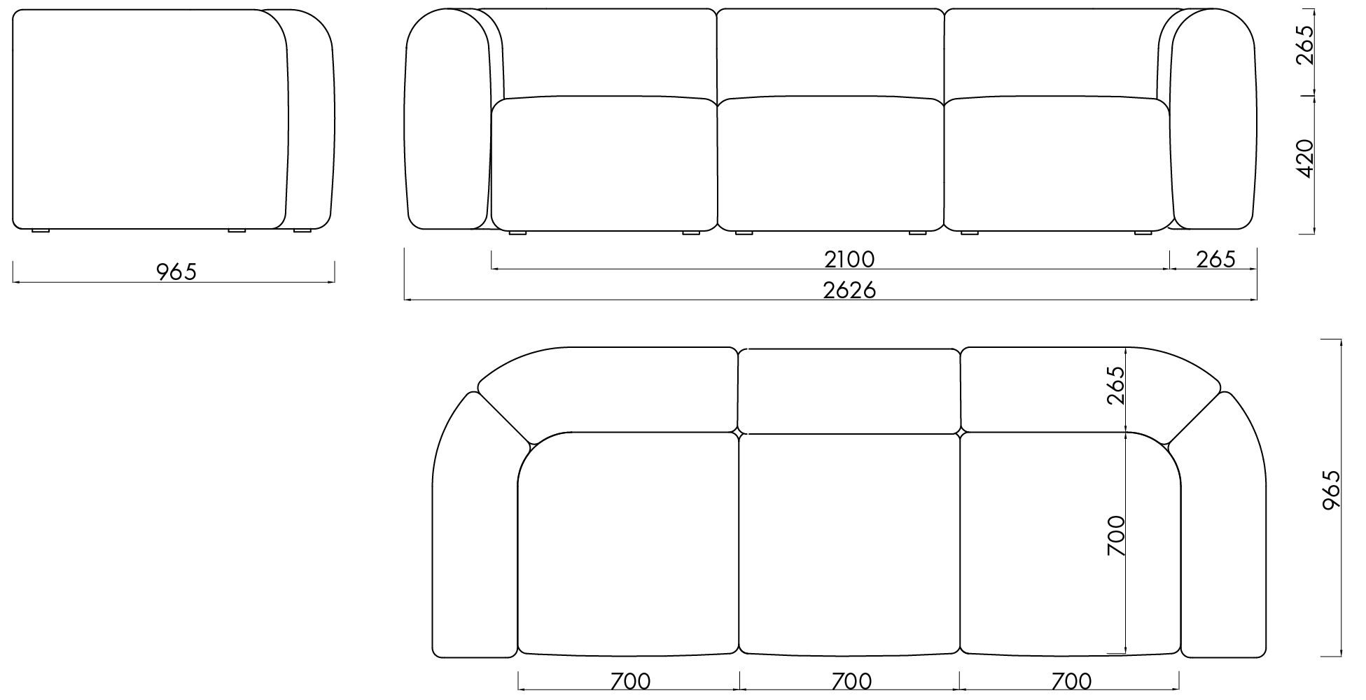 Seat width: 210 cm