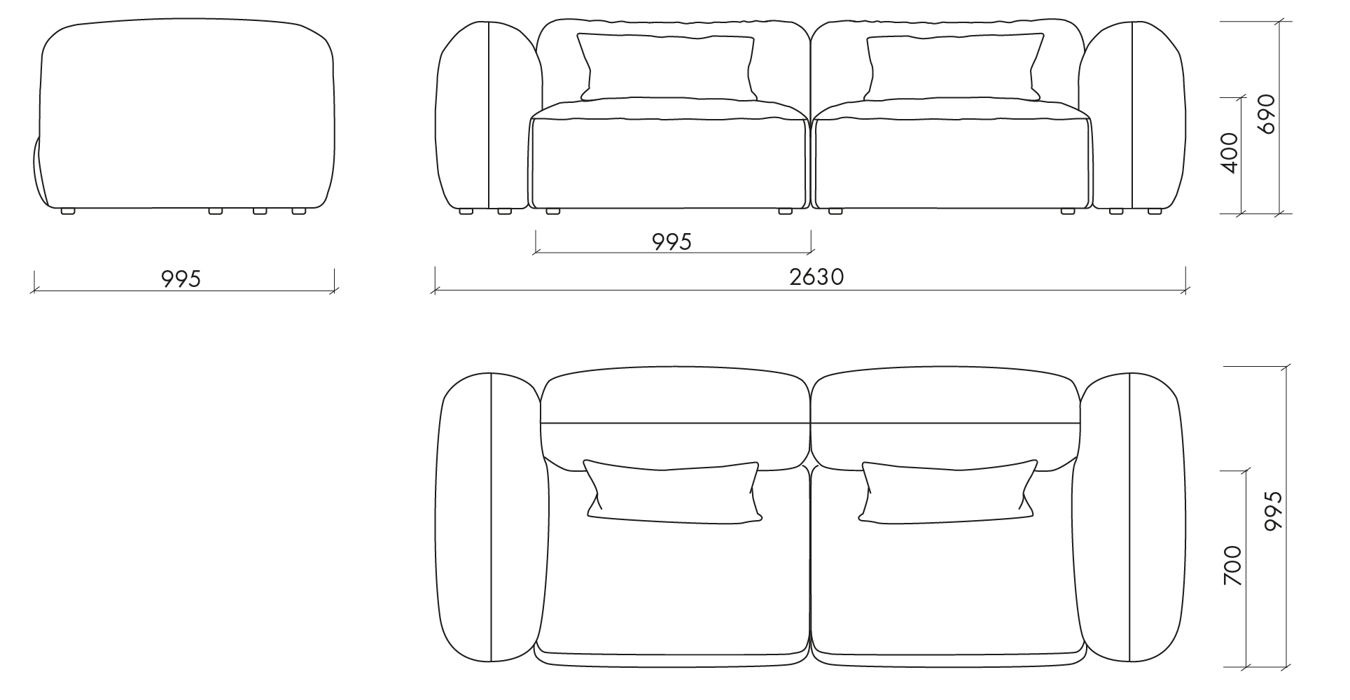 Seat width: 199 cm