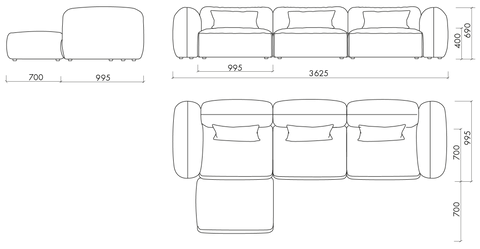 This product comes in 5 variants to fit your individual needs: 3-seater, 3-seater corner, 4-seater, 4-seater corner, and with ottoman.